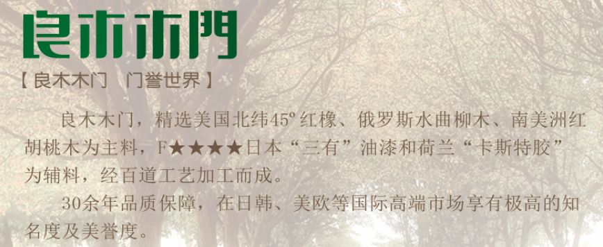 优雅诺木门引进大型的表面处理设备进行流水作业国际认可环保油漆,采用意大利的加工工艺,先进的枝术.优质的服务.向全国用户献上用心打造的精品木门。