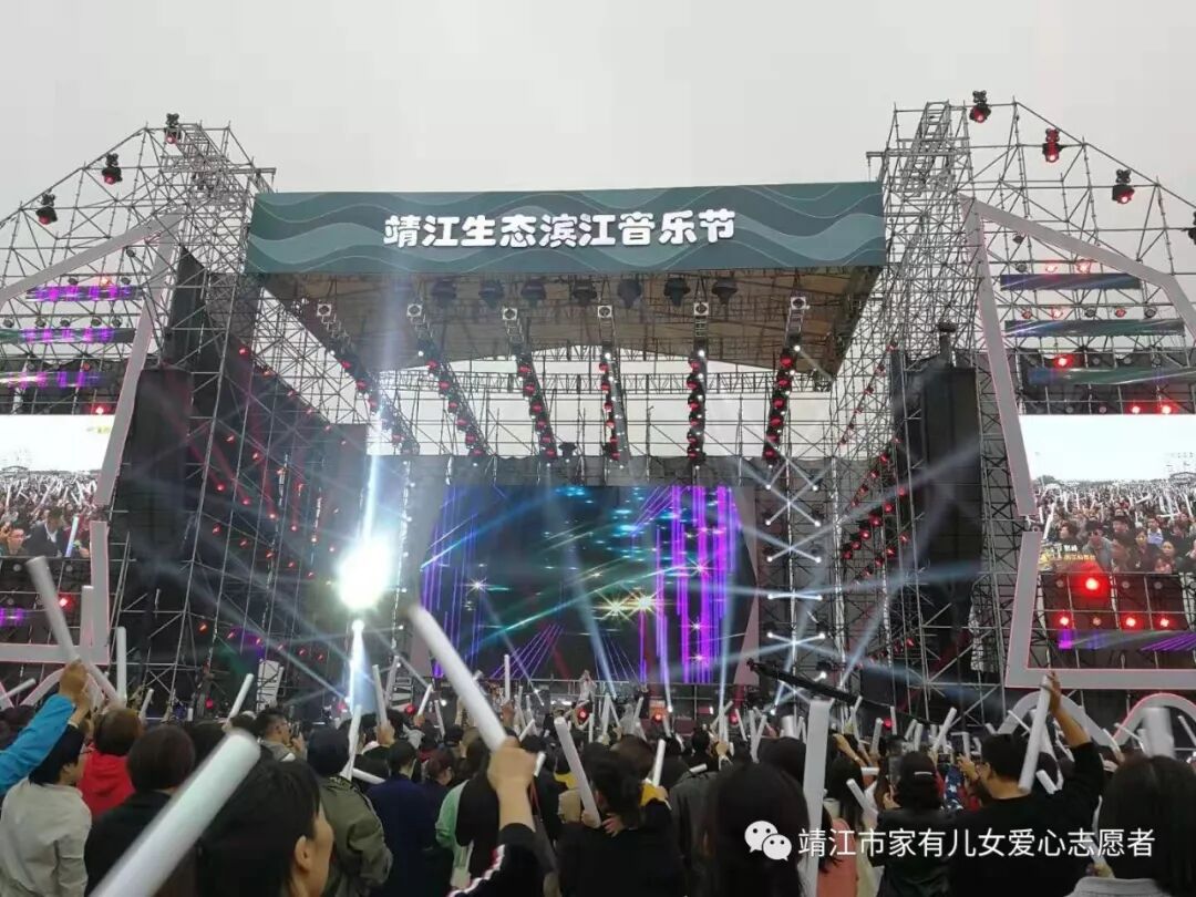 “家有儿女”参加了靖江首届生态滨江音乐节志愿服务。为了服务这场音乐节,“家有儿女”出动了40多人次的志愿者,为检票、舞台、演员休息室提供服务,最长的服务时长近12个小时。