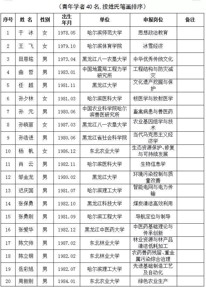 从入围人选来看,基本都来自黑龙江各大高校和科研机构。