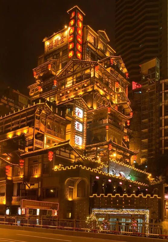 以最具巴渝传统建筑特色的“吊脚楼”风貌为主体,依山就势,沿江而建,让解放碑直达江滨。外来游客可在这里观吊脚群楼、观洪崖滴翠,逛山城老街、赏巴渝文化,品特色小吃、看两江汇流,远眺“时空飞船”重庆大剧院。后返回酒店。