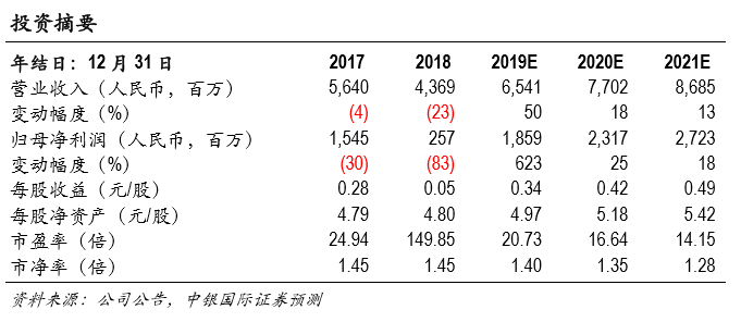 维持原有盈利预测,预计公司19/20/21年的归母净利润为19/23/27亿元,对应EPS0.34/0.42/0.49,维持中性评级。