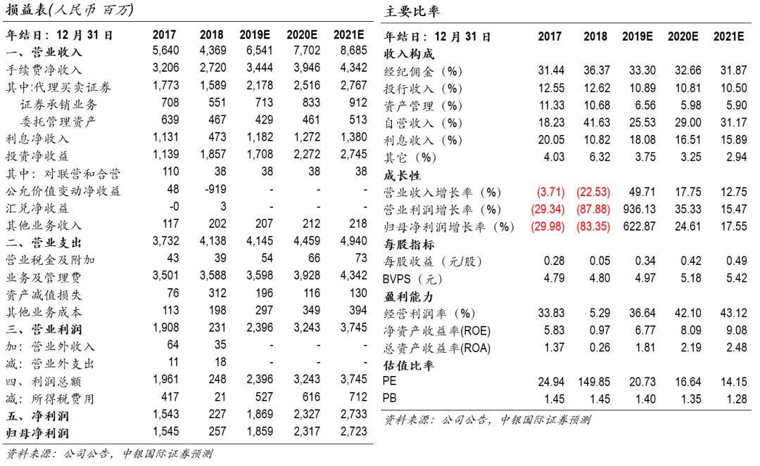 经纪业务实现稳健增长,资管业务收入持续下滑:1)受益于19年前三季度市场活跃度的提升(1-9月市场日均股基成交额为5801.3亿元,同比增长34.4%),公司实现经纪业务收入15.14亿元,同比增长20%。2)新会计准则规定债权投资收益由投资净收益科目划转至利息净收入项下,受此影响公司前三季度信用业务收入5.55亿元,同比增长31%。3)公司19年前三季度实现资管业务收入2.69亿元,同比下降11%,降幅较上半年有所放缓,仍然是主营业务中唯一收入下滑业务。在资管新规的持续影响下,预计公司的资管业务将继续承压。