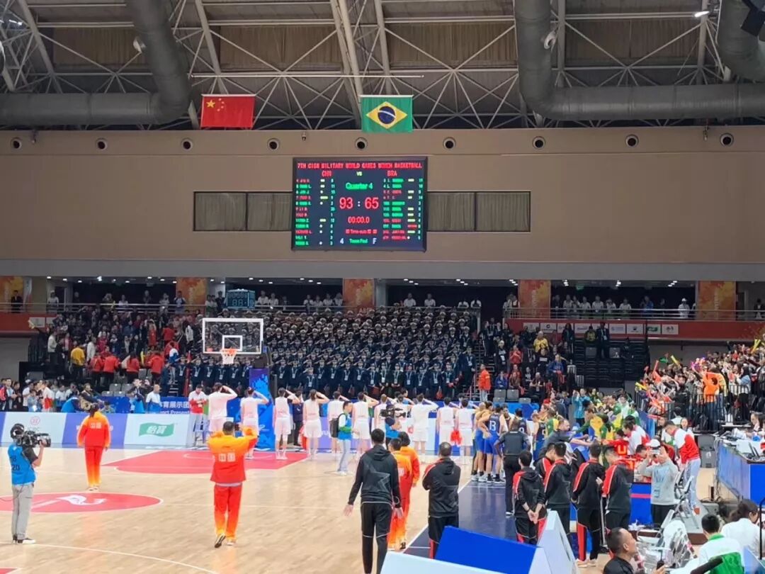 第四节开始,巴西女篮在此展现了顽强拼搏的精神,虽然大比分落后,依然没有放弃,连连得分。这个时候,全场突然响起了嘹亮《歌唱祖国》的歌声,中国队将领先继续稳固,最终以93-65战胜巴西队,夺得本届军运会女篮冠军。