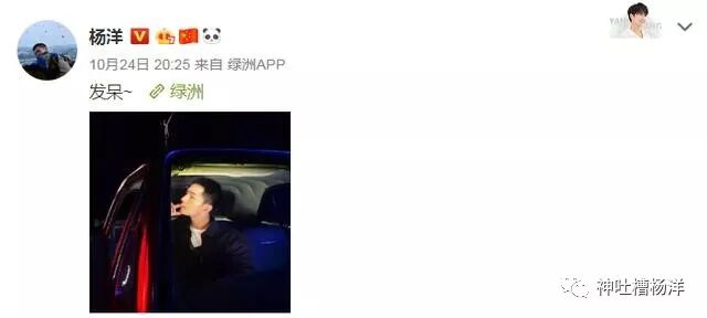 24日晚,杨洋微博更新一张帅照,配文:发呆~坐在车里露出雕刻般精致侧脸的杨总,确定是在发呆不是在散发强烈男性荷尔蒙吗?光是坐在那里也能感受到的爆棚A气,寸头大帅哥真的可。