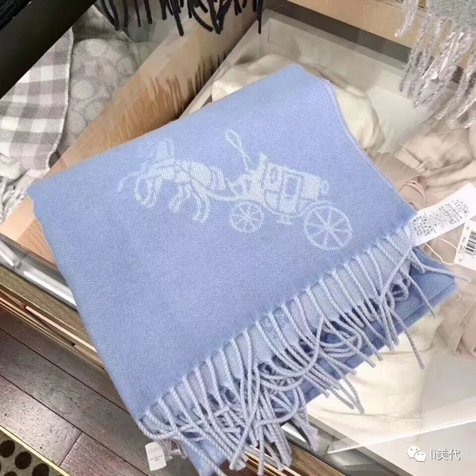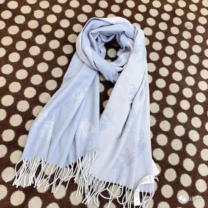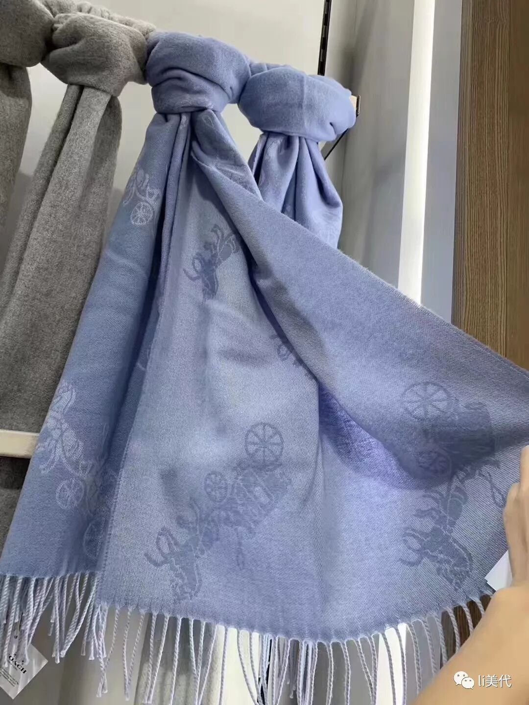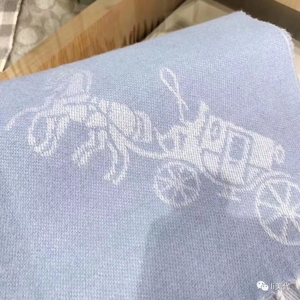浅色拼色经典马车标 非常清新减龄,当围巾或者披肩都行,双面颜色非常有层次感,面料柔软舒服,