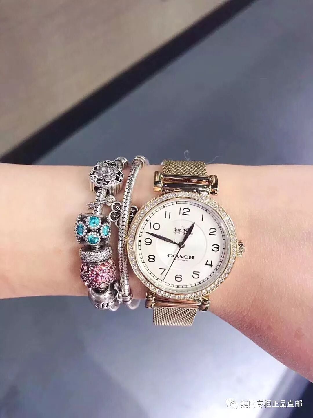 美国代购,Coach蔻驰新款麦迪逊晶钻女士手表