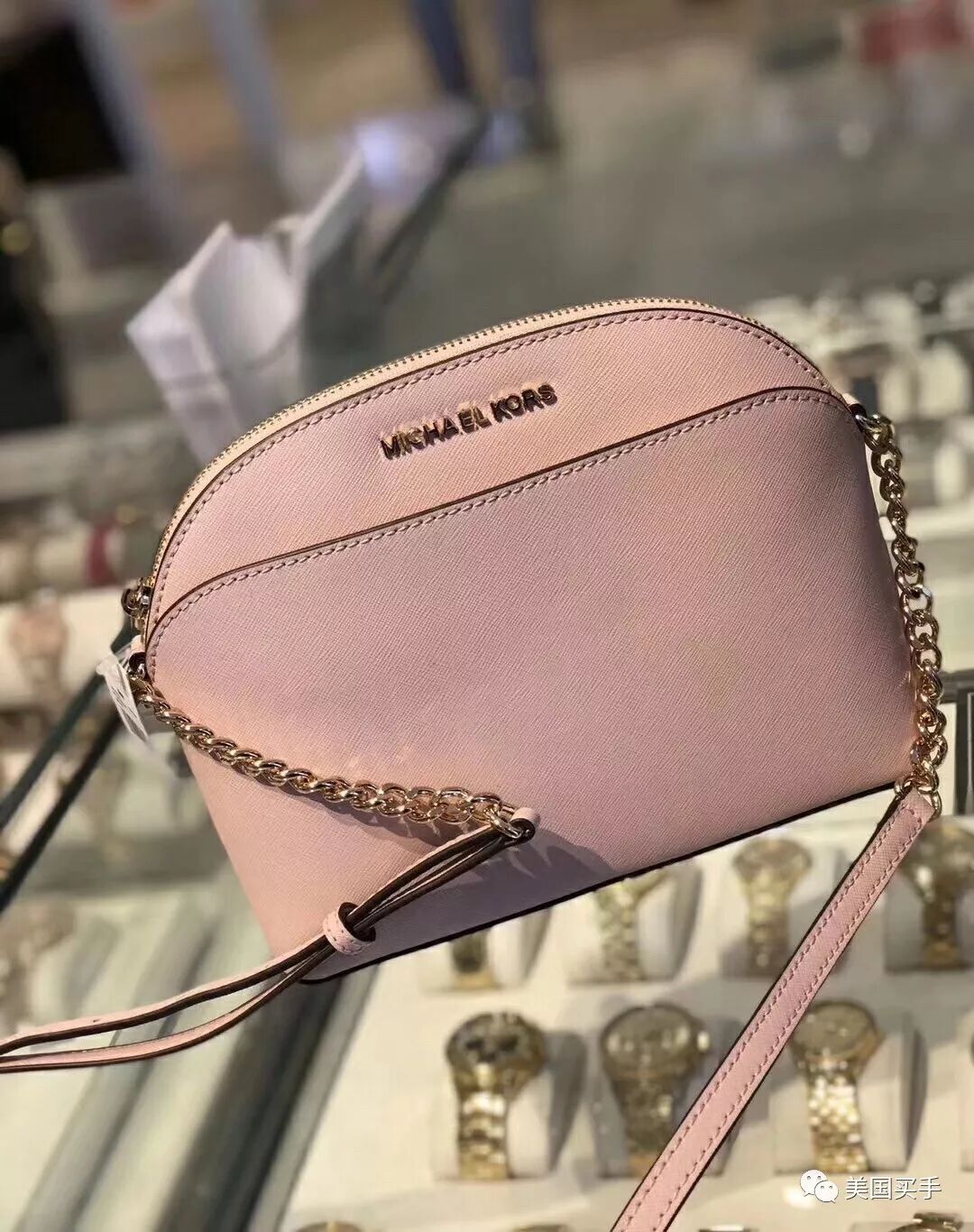 MK 小贝壳包,最热门樱花粉色和西柚粉也来啦!超级显嫩哦 非常少女心,链条长肩带斜挎包,十字纹牛皮制作,尺寸约:22*18*9cm