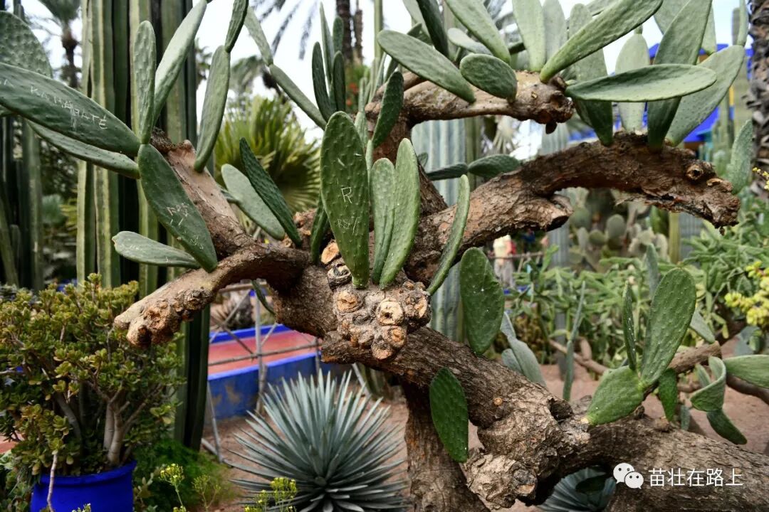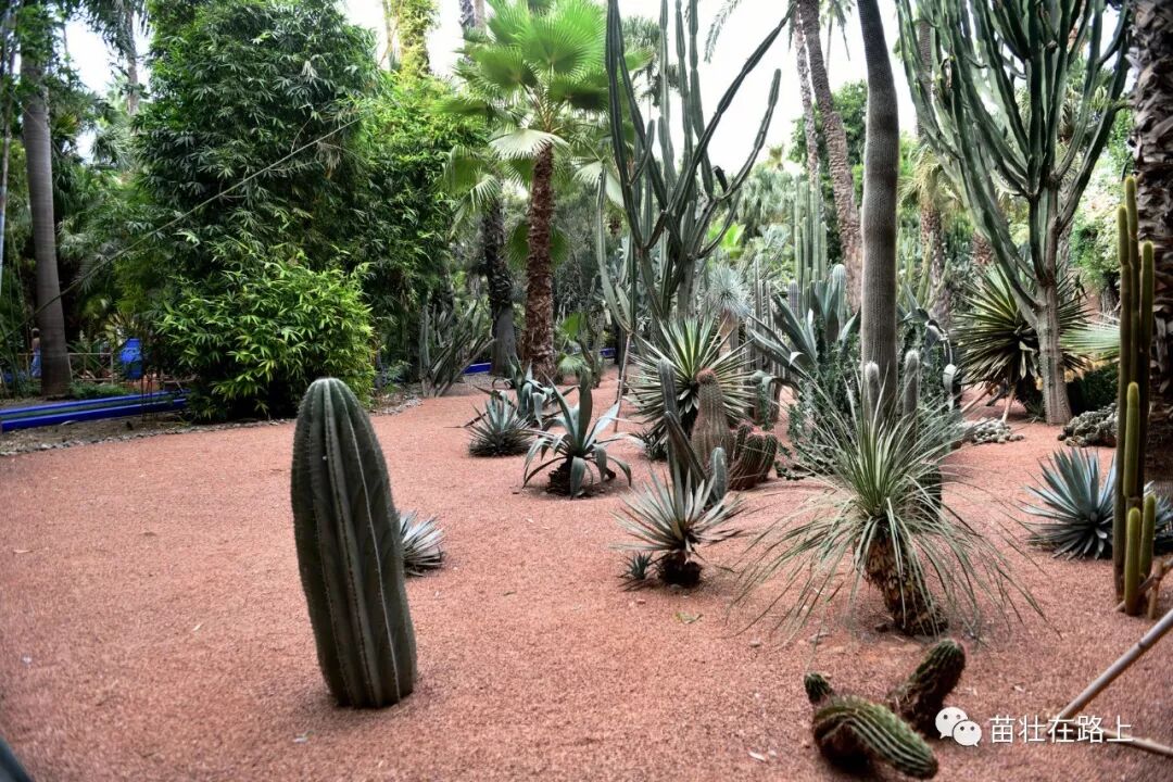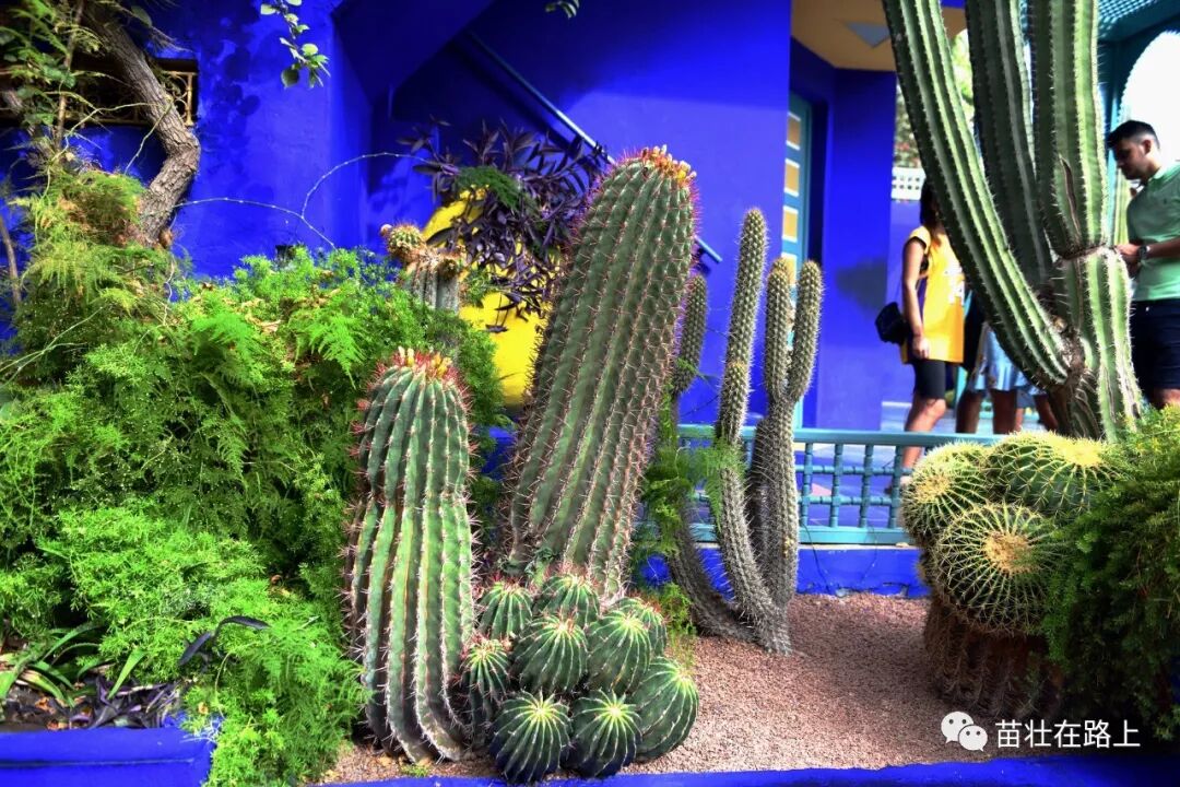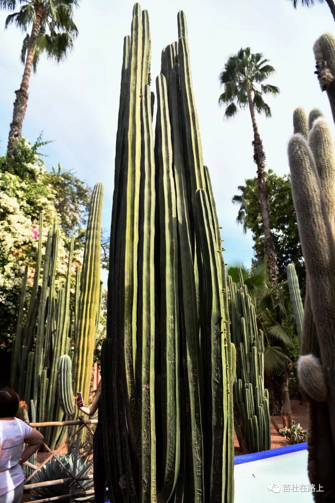 发了代购,我就去逛附近的马若雷勒花园了,步行大约一公里远。这座花园是时装设计大师圣洛伦购买的植物园,里面的植物都是热带特有的,仙人掌类的植物。花园门票可不算便宜,套票包括花园及内部的博物馆,还有外面的圣洛伦博物馆,一共是180迪拉姆。花园本身不大,里面的博物馆也还值得一看,收藏了很多摩洛哥特色的服装,饰品,就是不允许拍照。花园外的圣洛伦博物馆也很值得参观,这位服装设计大师是法国人,但是自从来到马拉喀什,就被这里的色彩所吸引,后来长期生活于此,长达四十年的时间。展厅里的一位工作人员竟然会讲中文,跟我聊了很久,讲了不少故事。