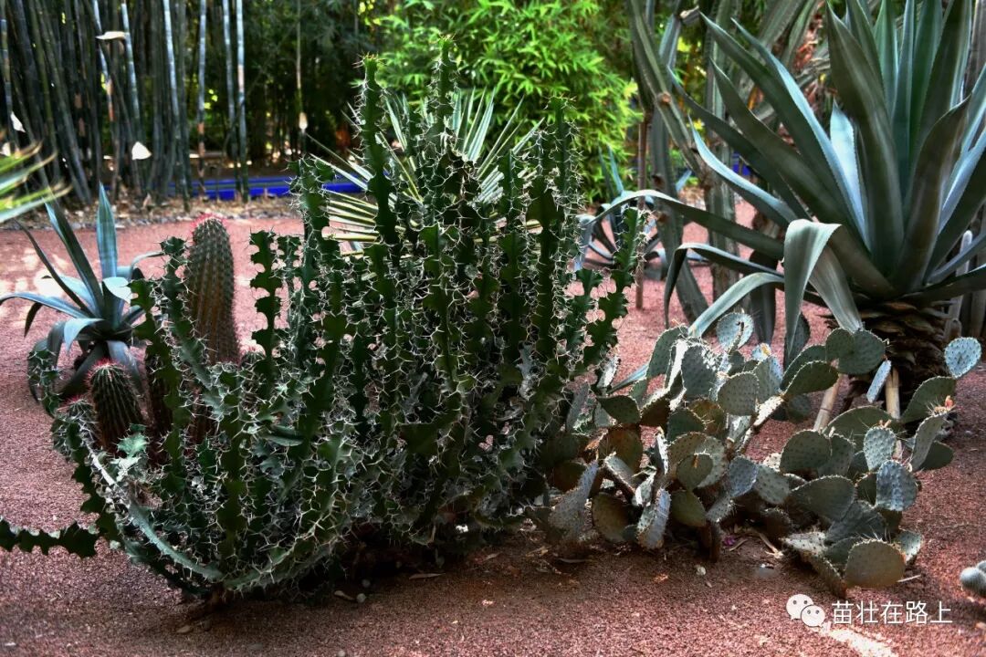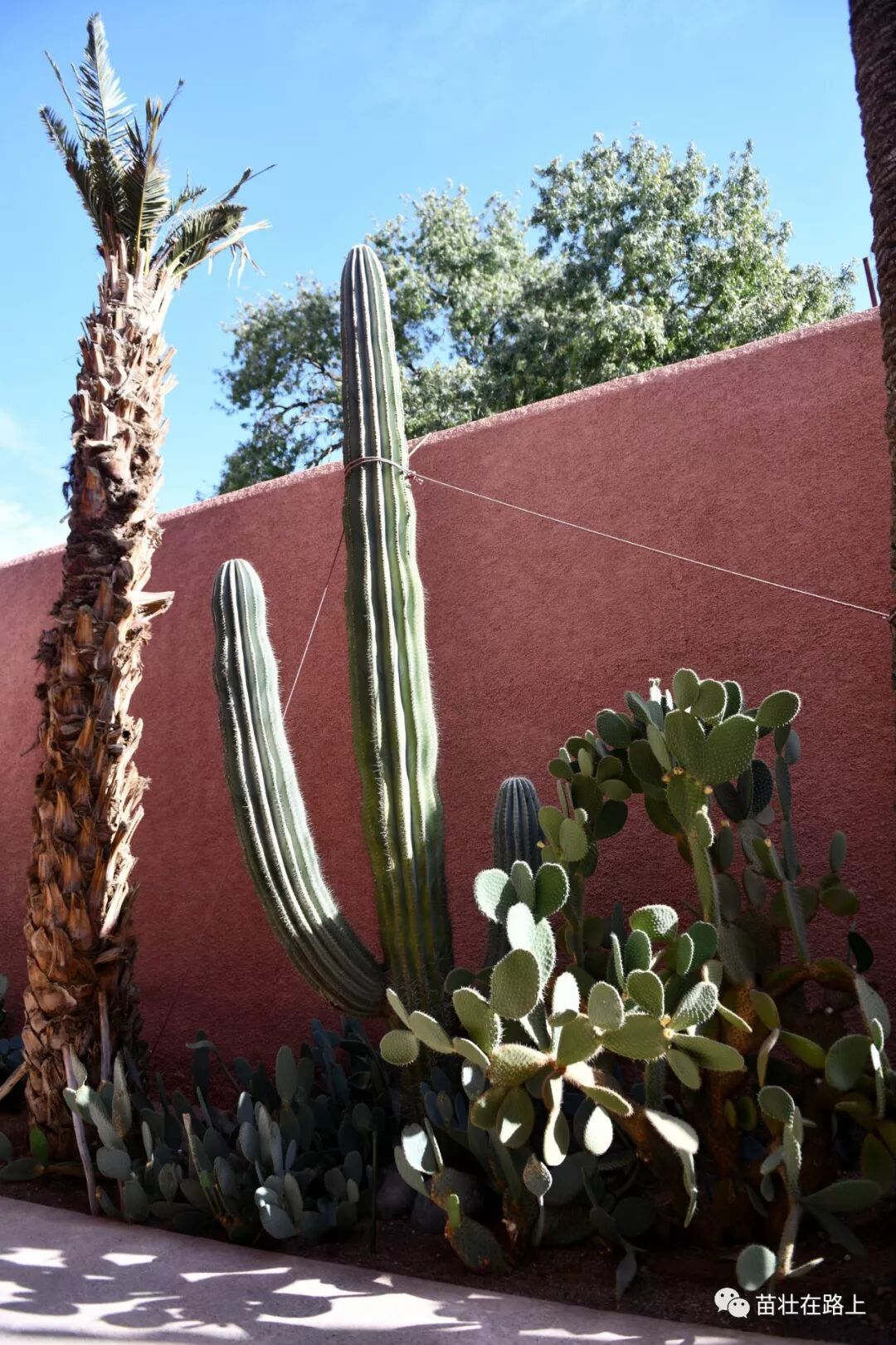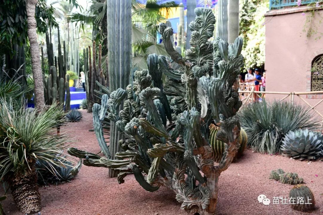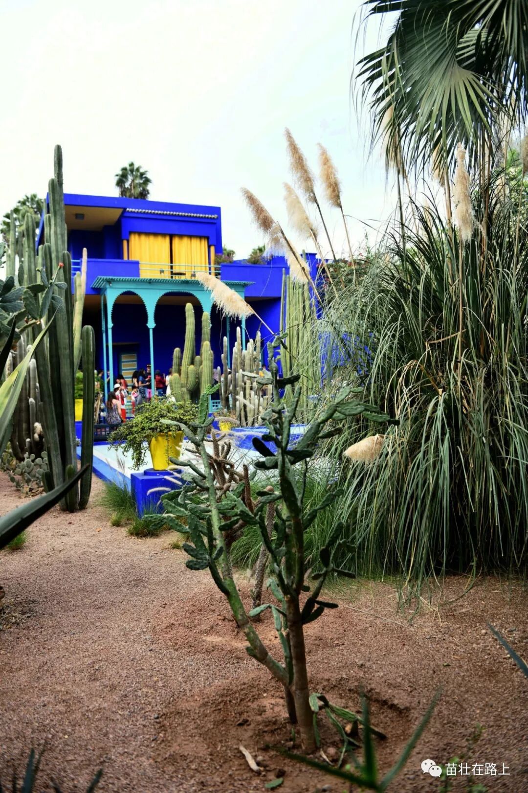 发了代购,我就去逛附近的马若雷勒花园了,步行大约一公里远。这座花园是时装设计大师圣洛伦购买的植物园,里面的植物都是热带特有的,仙人掌类的植物。花园门票可不算便宜,套票包括花园及内部的博物馆,还有外面的圣洛伦博物馆,一共是180迪拉姆。花园本身不大,里面的博物馆也还值得一看,收藏了很多摩洛哥特色的服装,饰品,就是不允许拍照。花园外的圣洛伦博物馆也很值得参观,这位服装设计大师是法国人,但是自从来到马拉喀什,就被这里的色彩所吸引,后来长期生活于此,长达四十年的时间。展厅里的一位工作人员竟然会讲中文,跟我聊了很久,讲了不少故事。