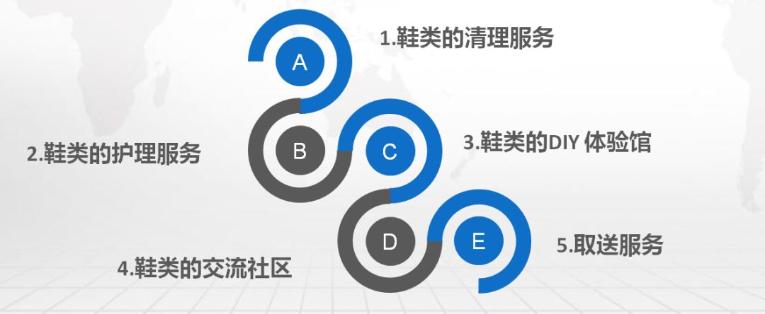 1.鞋类的清理服务:个性化和专业化的分类清理,利用市场已开发的黑科技和专业清洁技术,打造清洁、透明、环保的洗鞋服务。