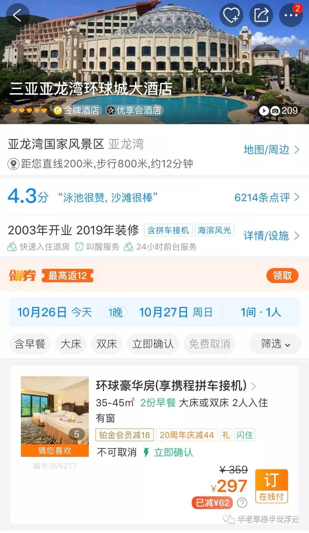 这个仙人掌酒店,订房时价格和环球城差不多,