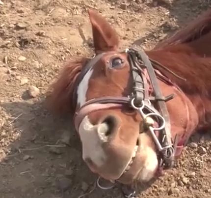近日,有一匹“懒马”火了!每当人们骑上它时它就躺地上装死。