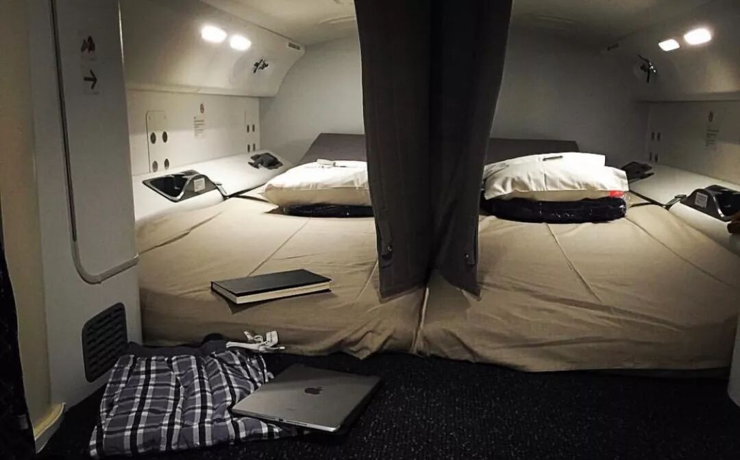 一般在长途洲际航线中,飞行员和空姐都有自己专门休息的地方。