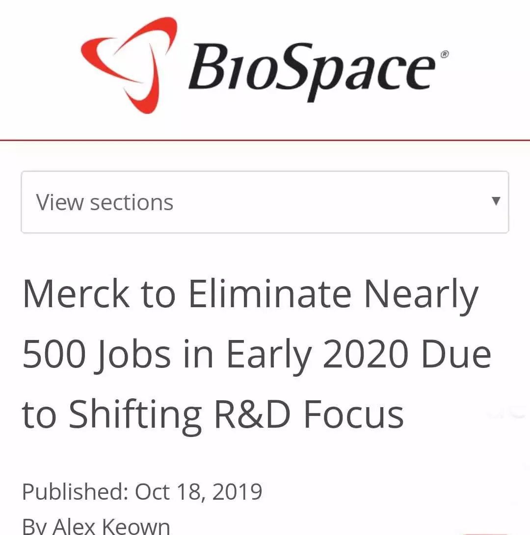 据悉,默沙东美国将从2020年1月3日起裁员,裁撤职位主要集中在销售和总部商务团队。默沙东女发言人Pamela Eisele表示,“部分受影响的员工可以申请公司其他部门职位,最终被解雇的员工将获得‘全面的离职待遇’。”
