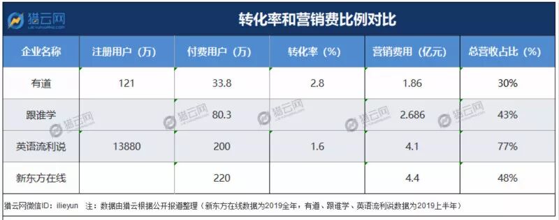 网易有道招股书显示,其公司营业费用占收入比重一直达到约60%。其中,仅营销费用占比就达到30%。看来手握“巨大流量池”的有道,似乎也逃脱不开目前在线教育营销投入的宿命。