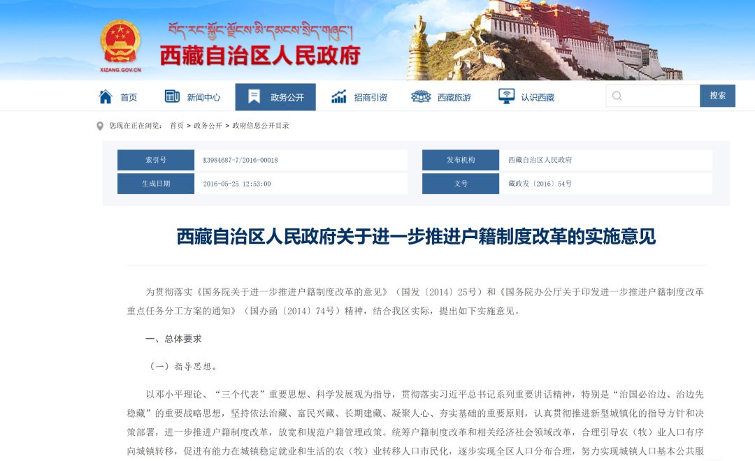 《西藏自治区人民政府关于进一步推进户籍制度改革的实施意见》规定,“具有合法房产证明,不受住房面积、金额限制,本人及其共同居住生活的配偶、未成年子女、父母,可在当地申请登记常住户口。”有了户籍,就可参加当地的高考。