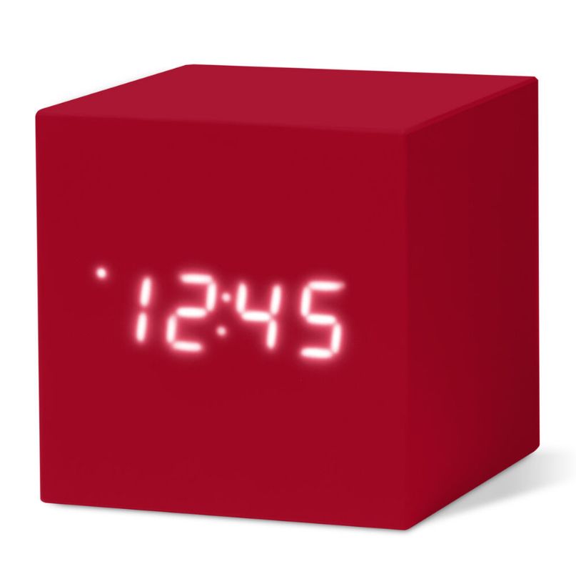 这个触觉橡胶版我们流行的立方体时钟有三种颜色和功能声激活LED显示的时间,日期和温度;自动调光器和警报五分钟打盹功能。需要三个AAA电池或USB适配器。