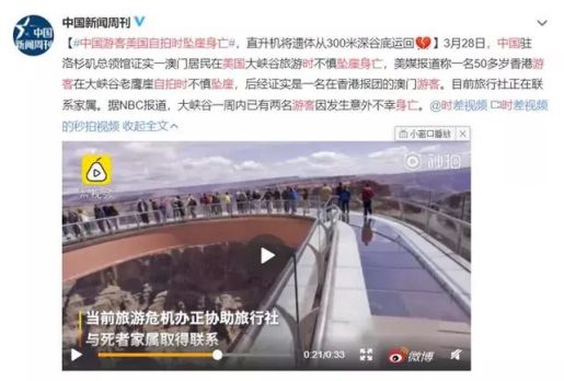 今年3月,就有一位游客在大峡谷自拍时,不慎坠崖。