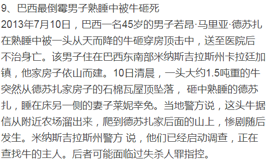 全球十大意外死亡排行, 简直是太惨了