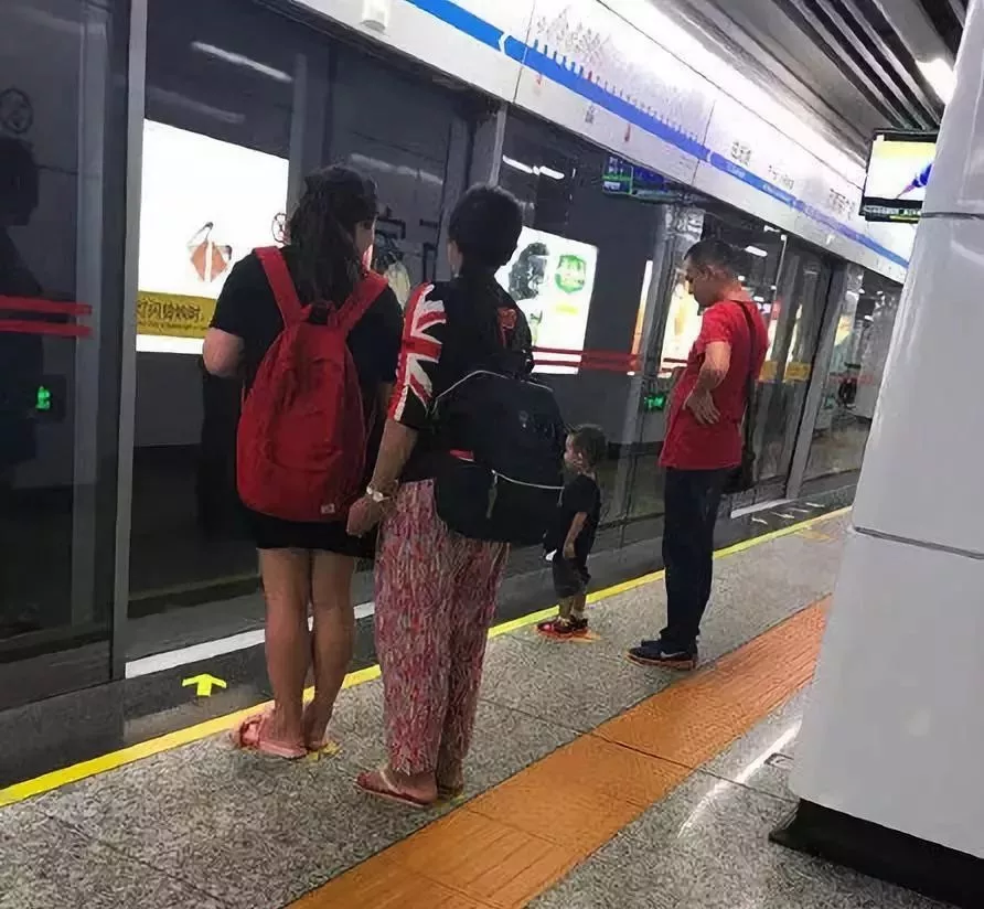 在等地铁的时候,当孩子问“脚下踩的脚印是干嘛的”你和家人耐心地告诉他这是排队用的,并且整齐地排了队给他看;那么你便教会了他遵守秩序和规则。