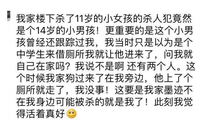 其实,整件事情更令人震惊和愤怒的是,有网友爆出在被害人遗体被找到的时候,凶手一家人在一旁若无其事地围观。