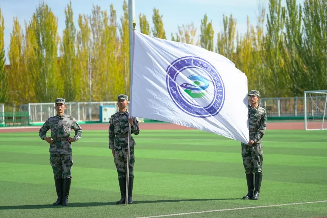 经过队列、升旗两个环节的交流展示,包头铁道职业技术学院国旗护卫队默契十足的配合,不断变化的动作赢得了观赛师生的掌声和赞许。在全自治区十六所高校代表队中脱颖而出,精彩的表演赢得了在场观众的高度认可。表演最后组成的铁路路徽标志为表演完美收尾。