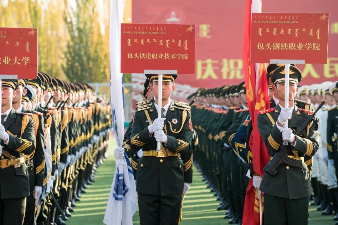 为深入贯彻党的十九大精神,全面贯彻全国教育大会精神,创新开展国防教育,全面激发学生爱国主义热情,2019年10月22日,全区学校国旗护卫队交流展示活动在内蒙古师范大学盛乐校区举行,共有来自全区各校的27支国旗护卫队伍参加交流展示。