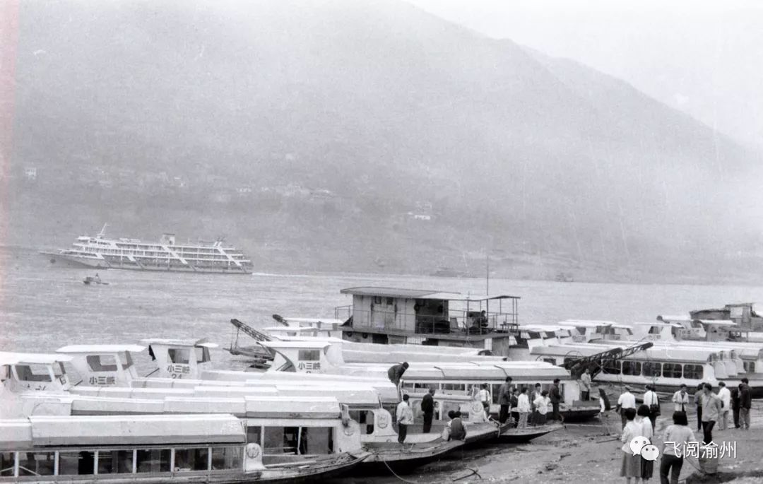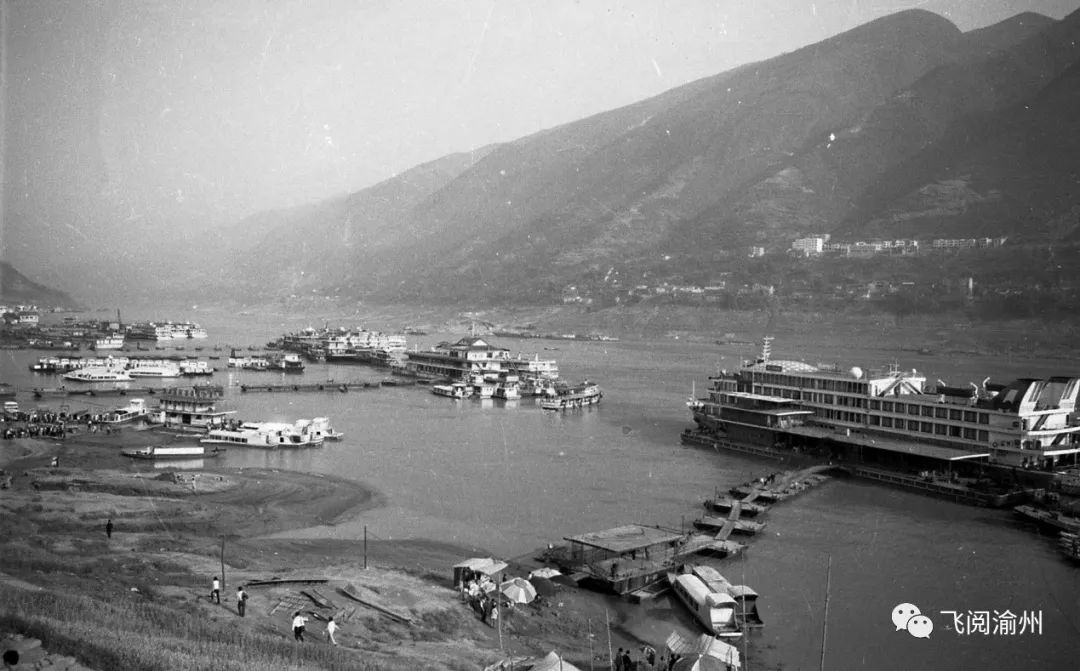 上世纪八十年代初,长江巫山口岸,冬季水位枯竭,码头临乱,上下船只停泊不便。