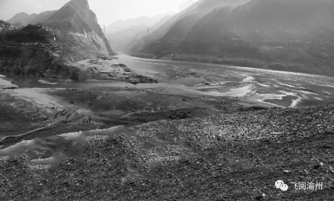 三峡工程蓄水前,长江巫峡口岸,秋冬时节,碛坝宽阔,大宁河口,涉水过河。
