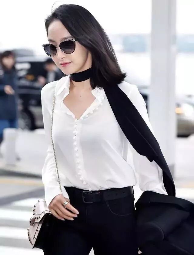 宋茜和允儿也有过这类搭配。她们分别选择了细丝巾和小方巾搭配白衬衫,一个利落一个优雅——