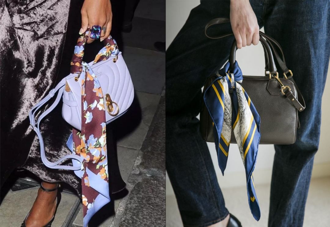 如果手上有丝巾不好搭衣服,我就会绑在各种包上,不管是小包、大包还是电脑包,万一撞包也不吃亏啊!