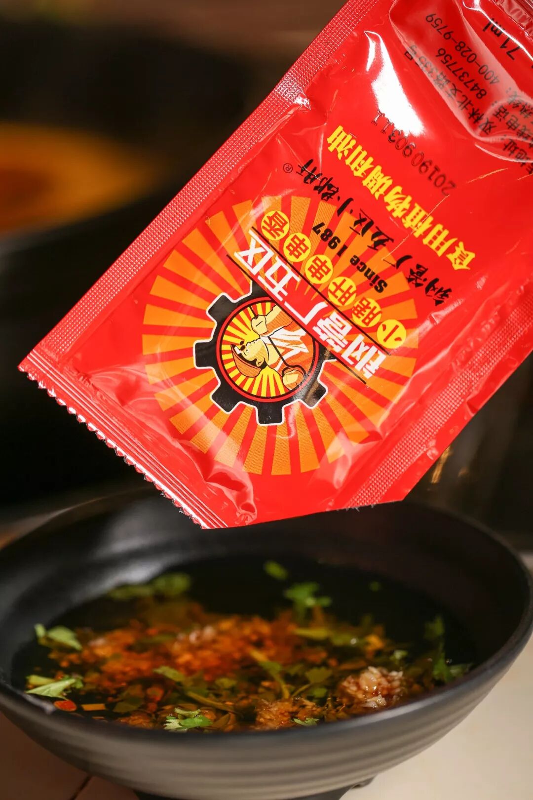 味碟是品牌方直飞过来的芝麻香油,清香又解辣,不油腻,将它倒进调味碟里,串串的味道更是纯正!
