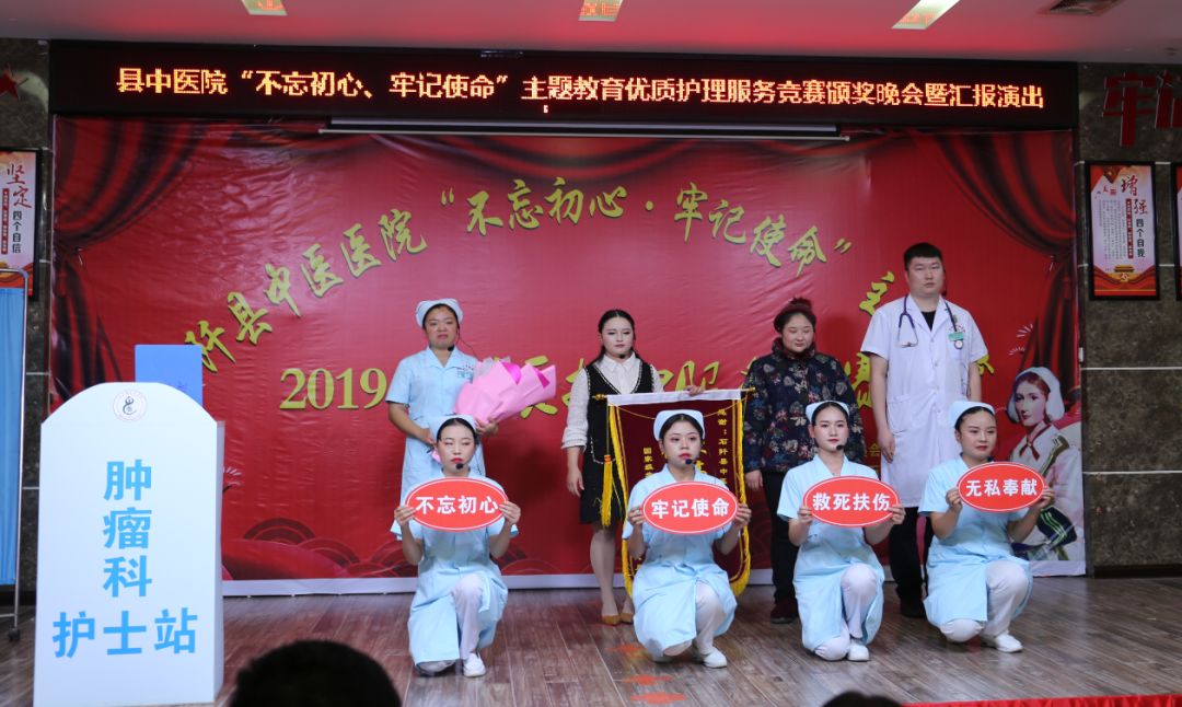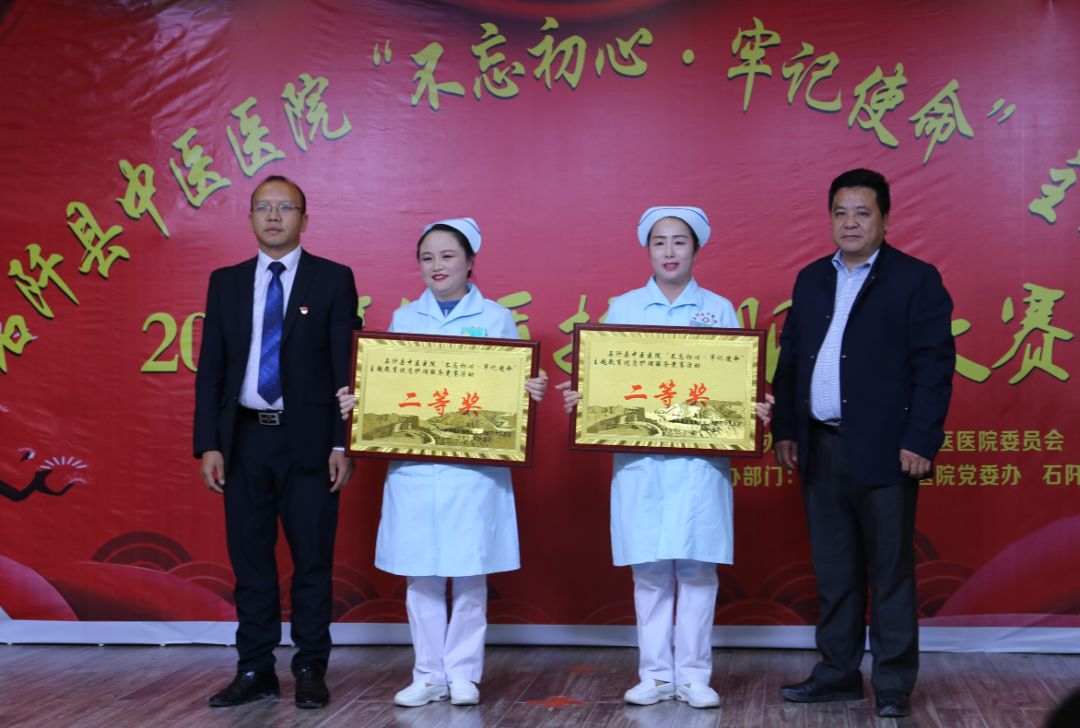 评出肿瘤科情景剧《天使的爱》和内二科情景剧《心路》并列团体一等奖,儿科小品《服务“药”治好不信任的病》和门诊部情景剧《爱的奉献》团体二等奖,康复科《用仁爱滋养初心、用实干践行使命》、妇产科《多美丽分娩记》、五官科《天使之路》、外一科《节目里的外科心》团体三等奖。黄秀锦、黄暑叶、黄秋萍、徐旭、徐敏荣获个人护理最佳综合奖。康复二病区、外二科、中坝分院、五德分院、花桥分院获得优秀组织奖。