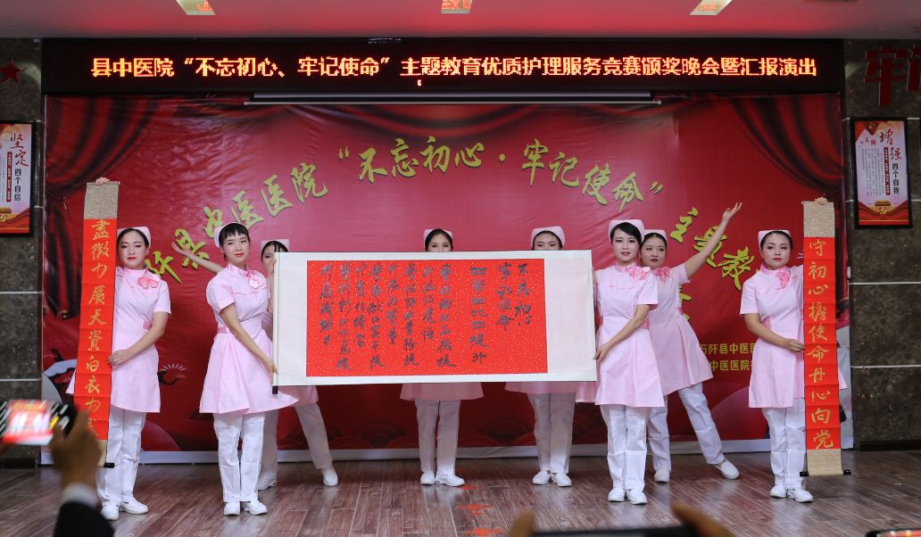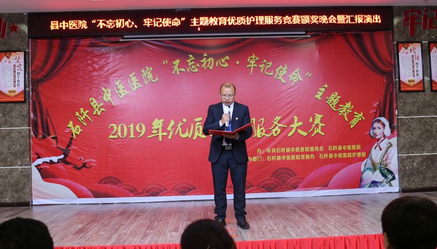 汇演晚会上,院党委书记何强清致辞,他对前来指导优质护理服务竞赛活动颁奖晚会暨汇报演出的各位领导、专家表示热烈的欢迎和崇高的敬意,对参加、筹备本次大赛的各科室、医共体分院默默付出干部职工表示衷心感谢!同时激励全院上下,要进一步强化责任担当,履职尽责、乐于奉献、全心全意为病人服务,要战胜当前医院发展存在的困难,越是困难,越要坚定信心,越是困难,越要敢于担当,越是困难,越要勇往直前。以“四学四比四提升”和“着力解决十个方面存在的问题”为抓手,扎实开展“不忘初心、牢记使命”主题教育,加强政治理论和专业技术学习,改善医疗环境提升服务态度,提高服务能力强化医疗安全,转变工作作风强化责任担当,增强廉洁意识加强党风廉政建设,强化医疗保障抓好脱贫攻坚。