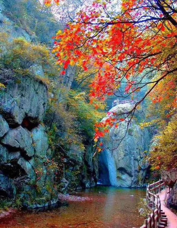 飒爽秋风,烬染红叶。当秋风四起时,稍一伸手,便接住了整个秋天。没有人群蜂拥而至,王屋山就像一幅秀丽的画卷,有的只是最原始的生命力。走累了,就在石凳上坐下,伴着山风,心情好得仿佛都能哼出歌来。