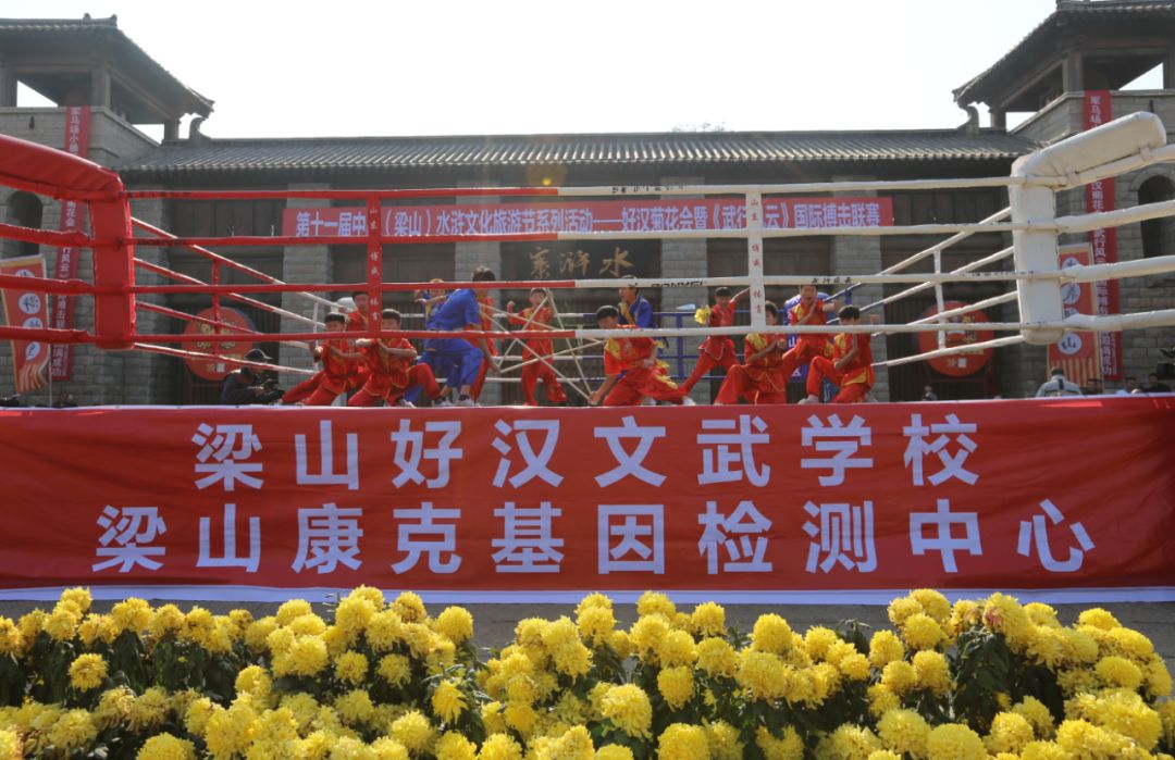 10月27日,2019中国(梁山)水浒文化旅游节系列活动——好汉菊花会暨《武行风云》国际搏击联赛在水泊梁山风景区水浒寨广场盛大开幕,为四海宾朋呈上一场饕餮盛宴。