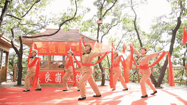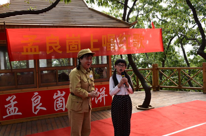 在通往战役纪念碑快到山顶的路旁,新建了一处唱红歌小剧场,配备了点歌唱歌的设备,既能观看精彩的红色演出又能参与到红歌大家唱活动。另外,这里还有高清的大电子显示屏,每天都会播放经典老电影《红日》,看的让人感慨万千。