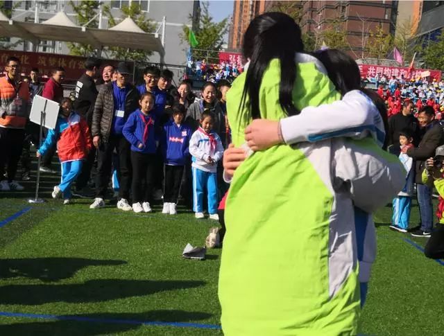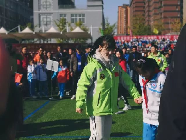 也许是看到大明星来了,李小璐身后的操场上站满了围观群众,就那么看着她和小姑娘做游戏,不过见惯这种场面的李小璐也没有丝毫不适应。