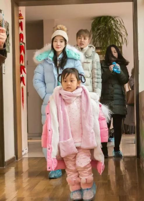 从图上看,李小璐当时应该是在某所小学,她自己身穿果绿色外套搭配一条运动裤,看她身后的一名男士穿着与她一样的外衣,应该是活动统一的服装。