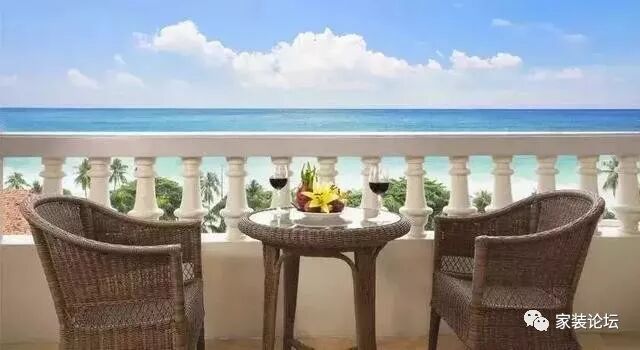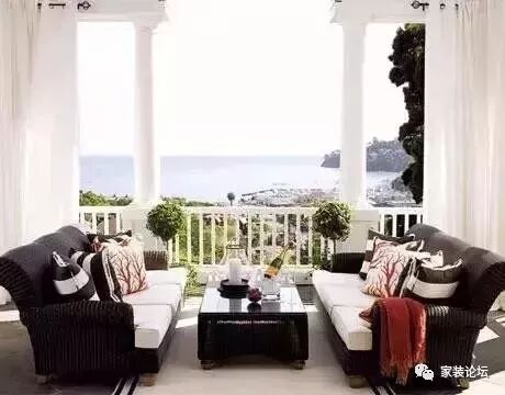 3、露台茶室:露台上空气好,风大又凉快,同时又看得又远,在露台上摆放家具可以用来当茶室,招待客人,在这样一个自然舒适,风景优美的露台上泡茶聊天,想必会非常的轻松自在,开放式露台所使用的家具建议用防腐木或是金属家具、石器家具、塑料家具等,这些家具风吹雨淋也不怕,可以长期放在室外。