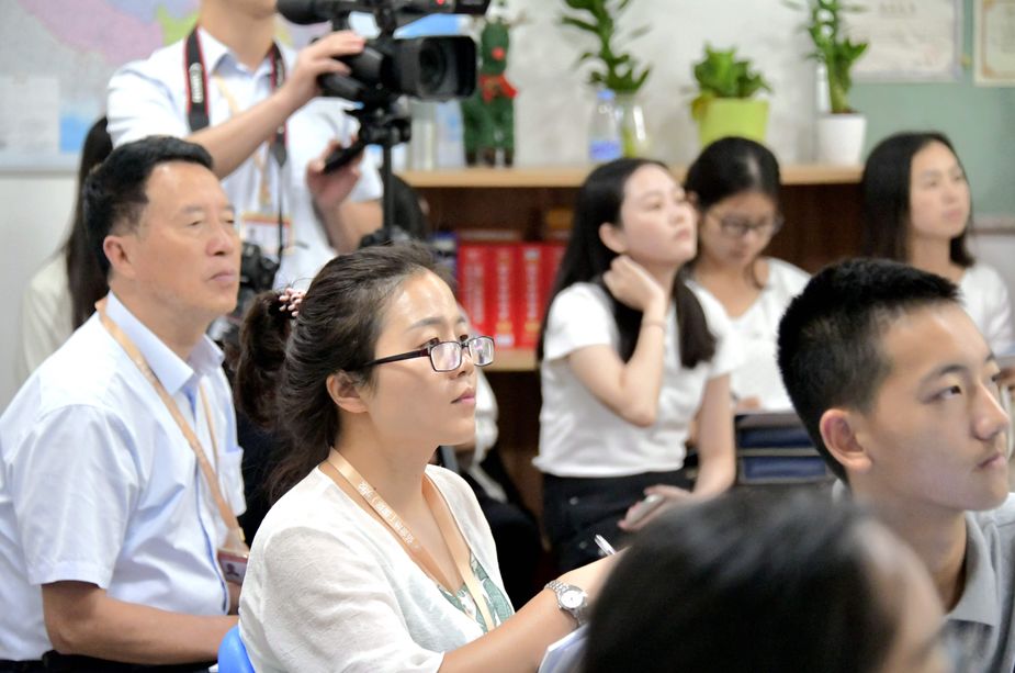 课堂一角,观课的老师们也毫不懈怠,细心观察着课堂的一切,认真的记着笔记,每一堂课都有着不一样的亮点,每一位老师有着独到的设计,这是难得的学习机会,每一位老师都不愿错过任何细节。
