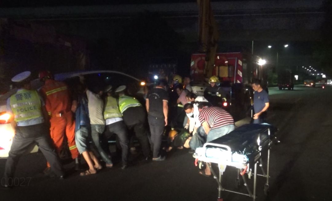 内容导读 10月24日晚上19时许,中山市东凤镇105国道励志科技园路段发生一起交通事故,一名骑摩托车的男子被卷进一辆小车的底部,情况危急!消防员迅速赶到现场展开营救,在场的10多名市民也加入到了救援行动,大家合力将车抬起,将被压男子抬了出来。