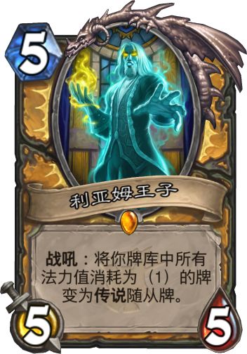 利亚姆王子是吉尔尼斯的王子,在某一天一个可怕的诅咒——:一群暗夜精灵德鲁伊滥用自然给予的野性之力所导致的灾难性后果和无可救药的堕落,席卷了他的国家,将许多吉尔尼斯人都变成了嗜血的狼人。在诅咒肆虐之时,希尔瓦娜斯率领被遗忘者入侵了这个虚弱的国家。许多英勇的吉尔尼斯人在保家卫国的战斗中失去了性命,利亚姆王子也牺牲了。WOW中似乎没有利亚姆王子,而从炉石的原画中可以看出来,这一次利亚姆王子是以幽灵的形态出现的,也算是对吉尔尼斯以前的那场惨痛战役的致意吧。