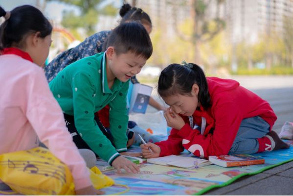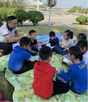 星空小队的读书分享活动在梅溪湖湖心岛举行,队员们早早来到约定的活动场地,铺上一张野餐垫,围坐一圈,分享阅读《小王子》的感受,谈自己最喜欢的故事,推荐自己最喜欢的一本书,孩子们边听边想,不时进行补充,还有的孩子拿出笔做笔记,养成了良好的阅读习惯。
