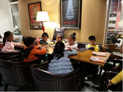 在这里没有城市的喧闹,只有轻轻的翻书声,没有孩子们的嬉戏打闹,却多了一点点心灵之间的交流和律动。一张桌子,一本书,一双双闪闪发光的眼睛在柔和的灯光下显得格外的美丽。