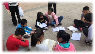 明媚的阳光下,1720班先一小队的队员们相约城市岛开展阅读分享活动。大家围成一个小圈,拿出《小王子》和笔,有模有样地自觉开始分享起来了。