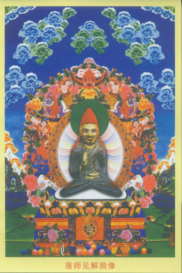 以下的偈颂录自经文之(两尊见解脱像一览),它说明莲花生上师如何制作并特别以神通力使之成为不共加持圣物。