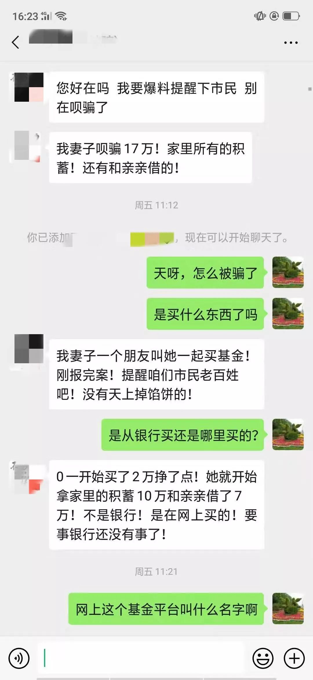 她在把钱转给我之前想把投入基金的钱取出来,他朋友又说让她先别取,说了一些不太好听的话,什么“你常年看孩子也帮不上什么忙,你应该凭自己本事挣点钱”“这么好的机会”。这样的(一激),我妻子就把17万块钱全给他打进去了!