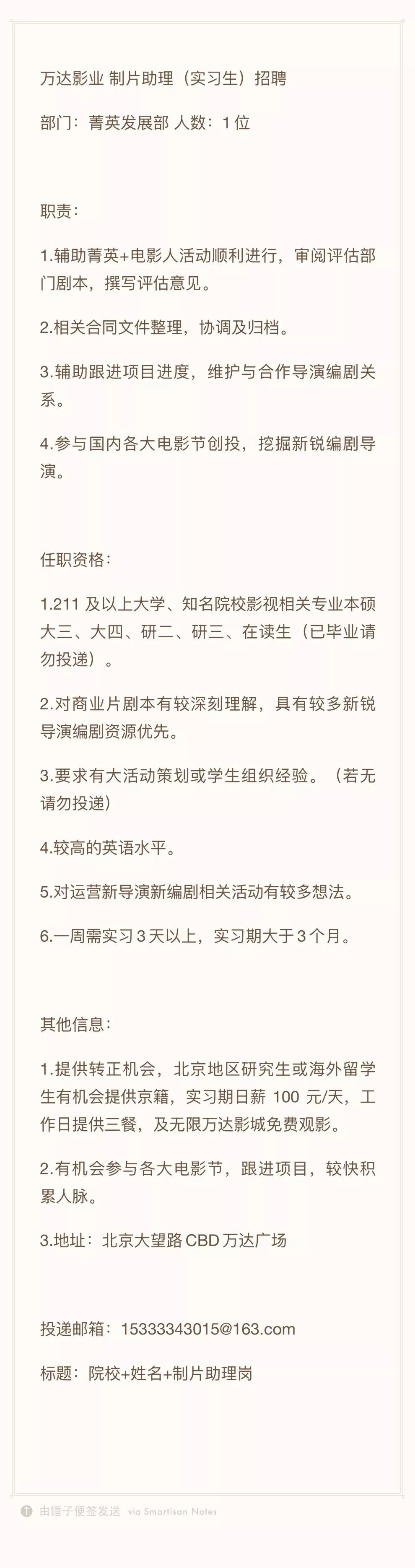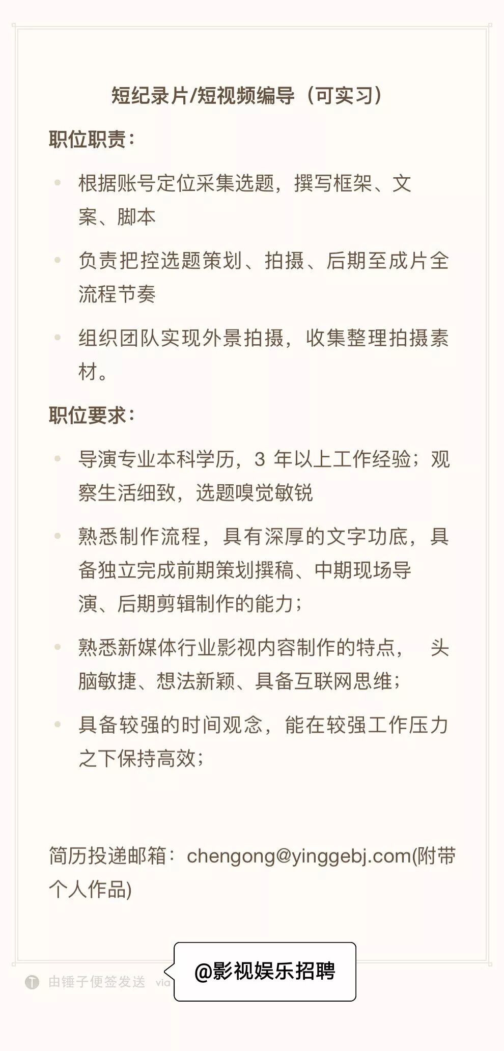 10/27招聘北京映格文化、万达影业、微博明星等6家传媒公司招聘