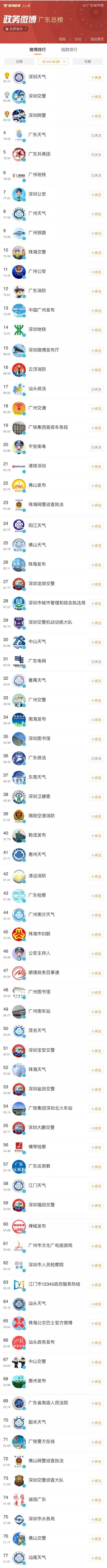 榜单|广东政务微博指数排行榜出炉!(10.07-10.13)